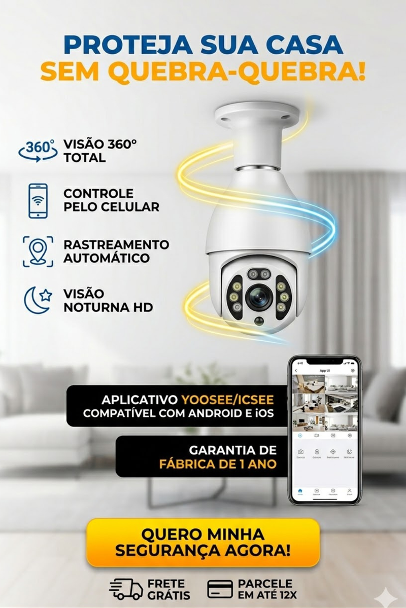 Assuma o controle total 24h: monitore sua casa em 360° e HD pelo celular. Com rastreamento automático e visão noturna colorida, você protege sua família e com aplicativo 100% Gratuito. Instale em segundos!